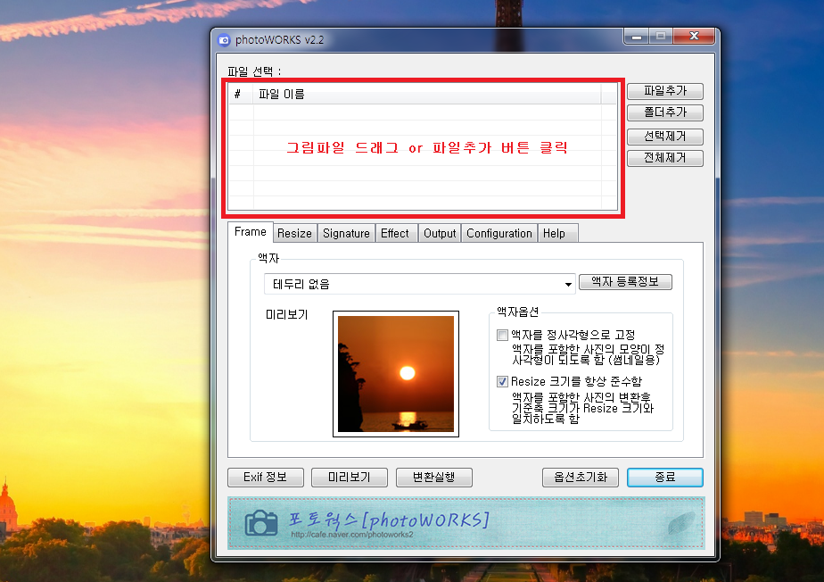 리사이즈만 하실 분은 설정 후 변환실행을 클릭해주면 끝! 간단하지요?